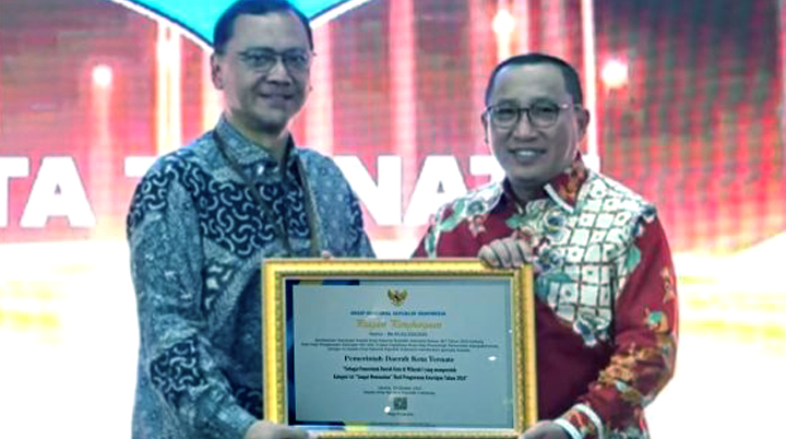 TERNATE, PNc—Wali Kota Ternate, M. Tauhid Soleman menerima Penghargaan Penyelenggaraan Kearsipan 2024 sebagai Pemerintah Daerah Kabupaten/Kota yang memperoleh peringkat XIV dengan kategori AA “Sangat Memuaskan” berdasarkan hasil pengawasan kearsipan tahun 2024.