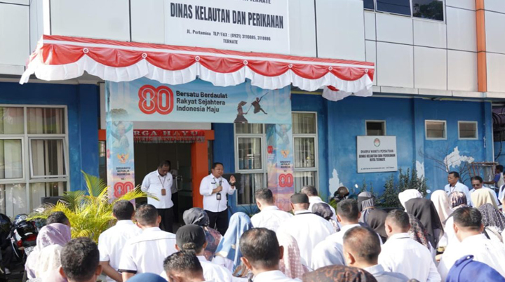 “Kita lihat sekarang ini, nelayan kita yang ada di pesisir, ke depan, akan menjadi tantangan tersendiri. Sehingga harus ada kerja-kerja kreatif dari DKP Kota Ternate untuk terus berinovasi. Paling tidak, budidaya perairan air tawar menjadi alternatif atas perubahan regulasi, dan harus dioptimalkan, tanpa mengesampingkan hasil pengelolaan tangkapan ikan di laut. Yang selama ini sudah menjadi sumber pendapatan para nelayan,” tutur Sekot Rizal Marsaoly, saat menghadiri dan memimpin apel pagi di halaman kantor DKP Kota Ternate, Kelurahan Sasa, Ternate Selatan, Rabu (22/10/2025) dalam agenda program Rabu menyapa.
