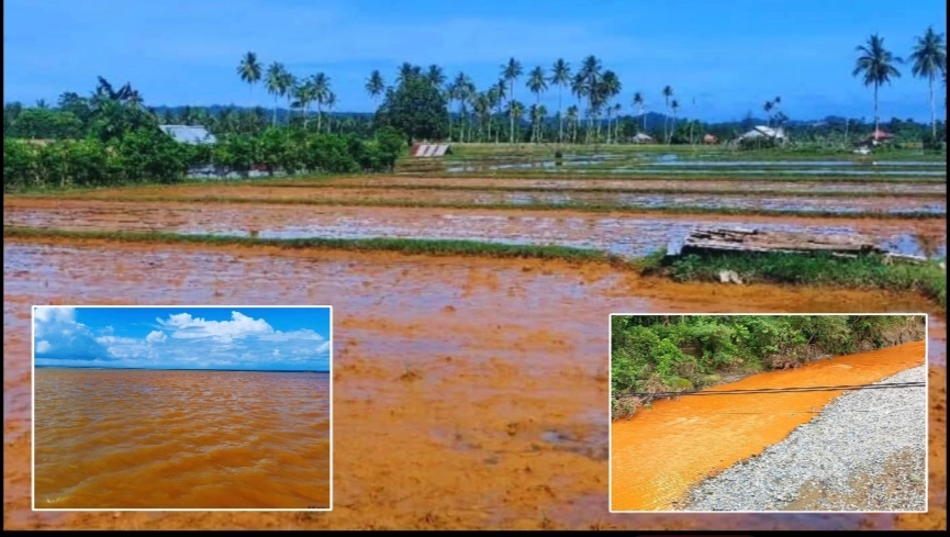 Dampak limbah tambang juga menghantam petani kelapa. Hayarudin mengungkapkan lumpur merah dari aktivitas pertambangan masuk ke kebun setiap kali banjir.