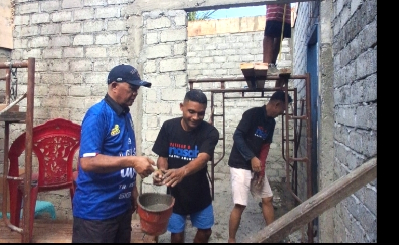 Wawali Nasri turun langsung ke Kelurahan Sasa, Kecamatan Ternate Selatan, bergotong royong bersama warga membangun kembali rumah milik Risno Danel, yang rusak akibat hujan deras disertai angin kencang beberapa waktu lalu.